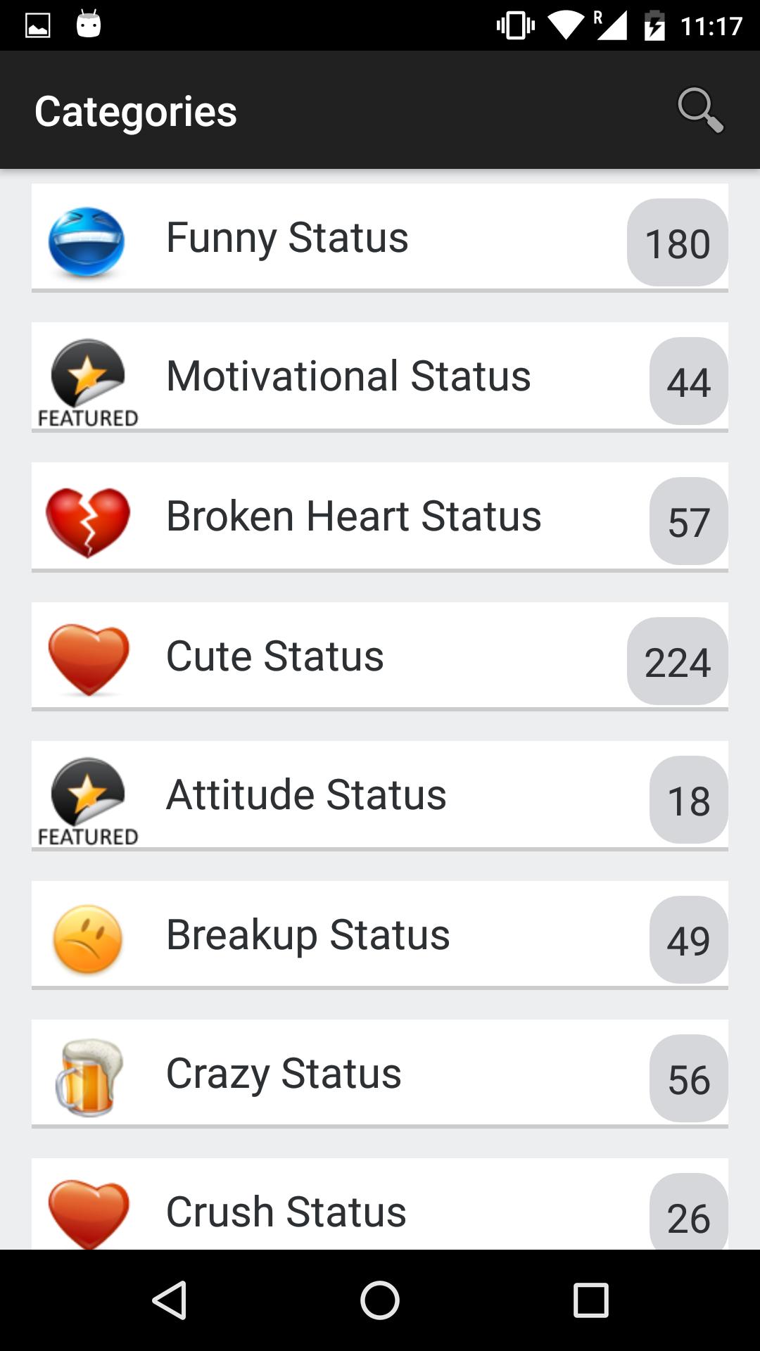 Free & must have app with categorized status messages to share on Social apps.