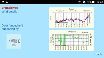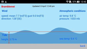 Further details in the form of 12-hour graphs of wind strength and direction, tide, temperatures and pressure, visibility, and wave height can be displayed (where available).