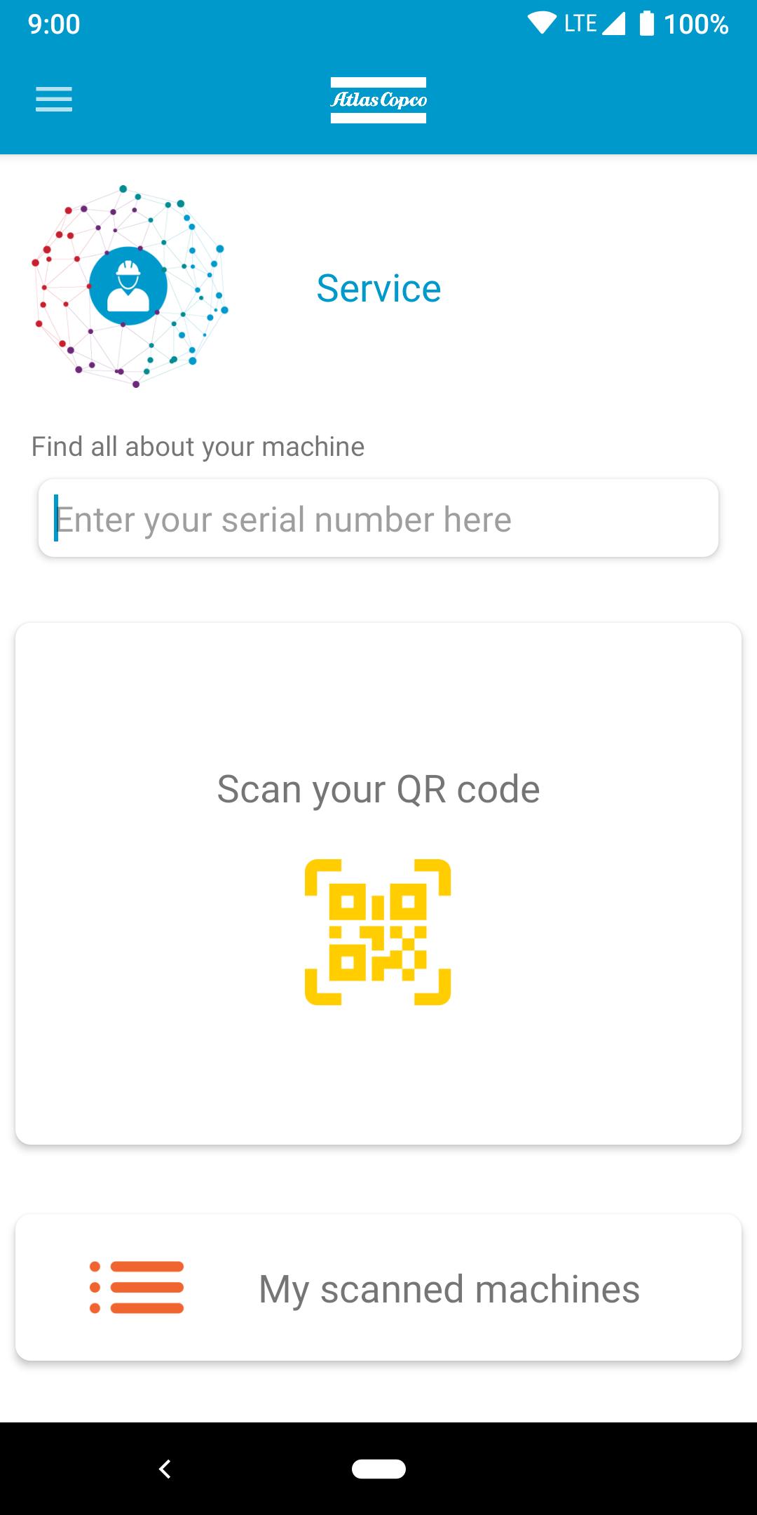 The app has a QR code scanner that enables you to quickly find spare parts, request a quote and find all information related to your machine like warranty status and instruction videos.
