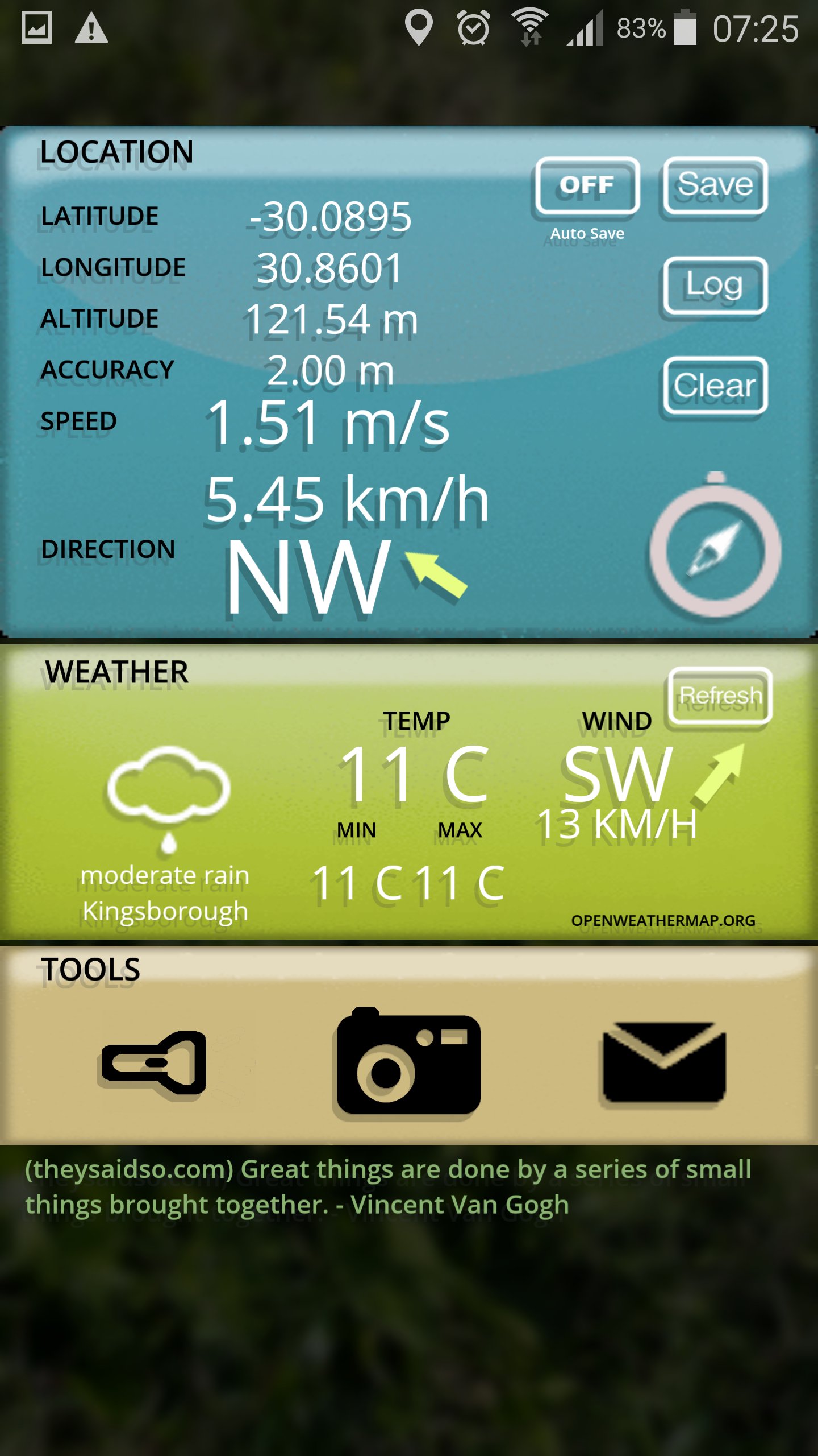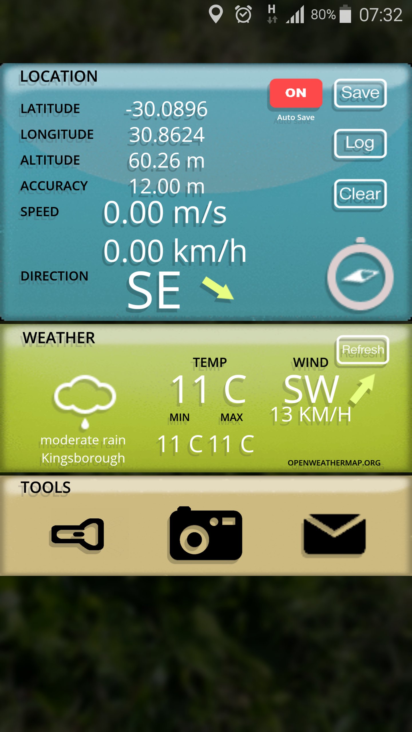 Tools app including mapping, navigation, camera, flashlight and weather.