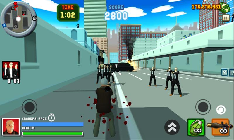 Your peaceful life is threatened by loads of street thugs and gangsters that are ruling the streets of this epic looking 3D city. So you need to reassemble yourself into your old black ops way to take this gangsters head on! Get your secret agent stuff out of the box and get back to the streets and take these youngsters out. Angry Grandpa City Frenzy is a action packed 3D simulation game where you can tear down an entire city.