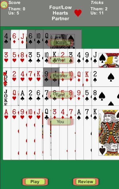 Practice Mode: The computer will not bid. Allowing the player to always win bid and practice different plays.