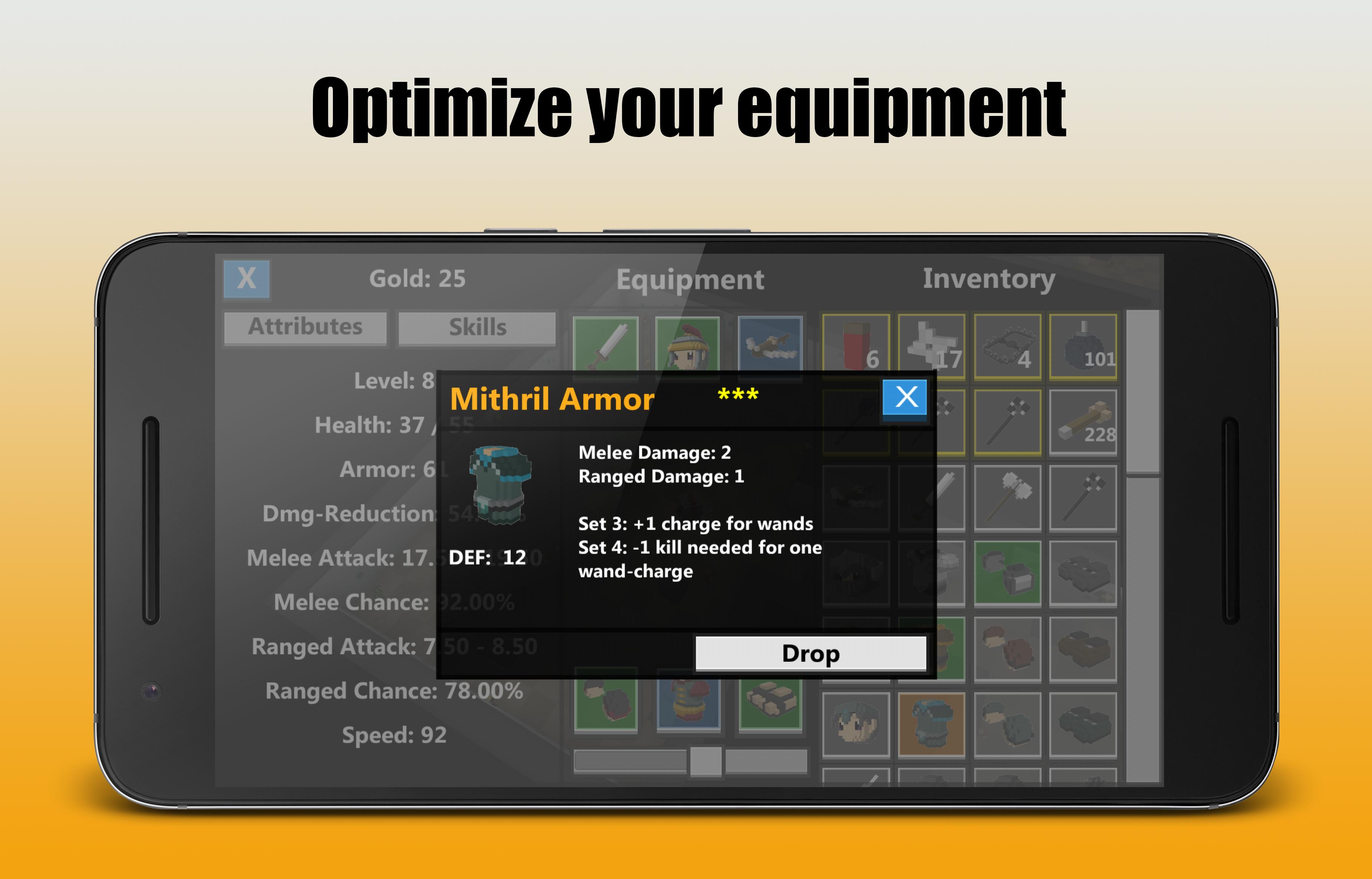 Attention, be careful and act tactical! Use your equipment at the right moment to make it deeper into the dungeon.