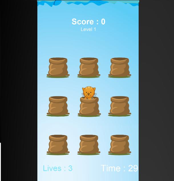 How to play: Tap onto the kitty to poke the kitty.. You have 3 lives.you will lose the lives when you click on an empty sack or any other animal .