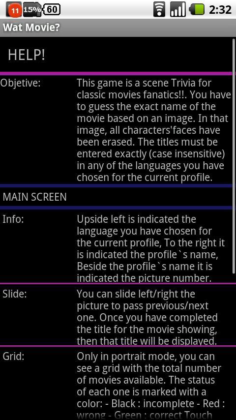 This game is a scene Trivia for classic movies fanatics!!.