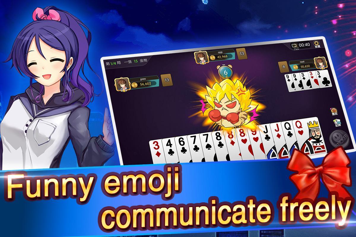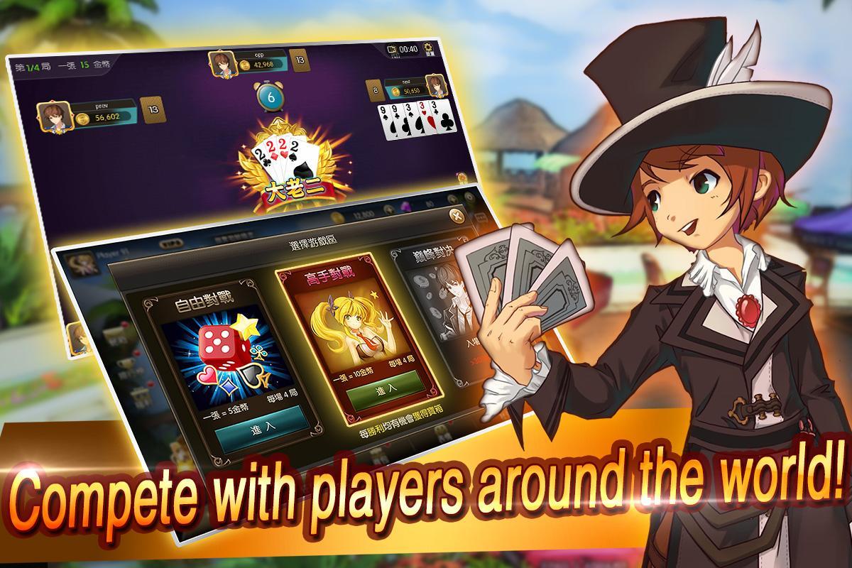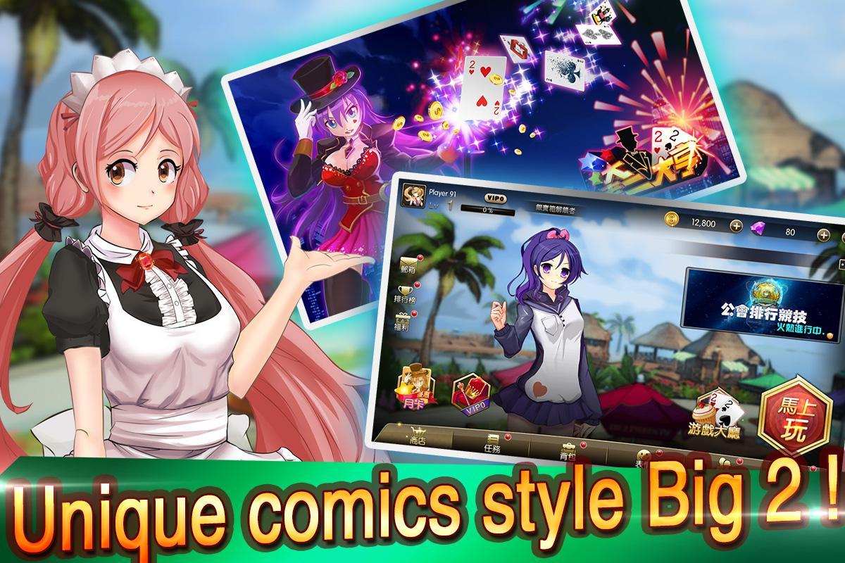 《Big 2 Tycoon》 is the one of the most interesting card games in Asia, it follows the rules of Big 2 in Taiwan. The only way to win the game is to be the first to get rid of all your cards.