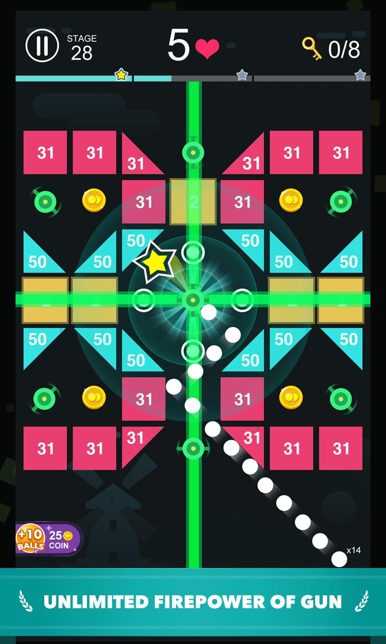 Unique mix between ball bounce and brick game ?, you only need to do is control the balls ? to shoot and bounce to a reasonable position, and bounce as many times as possible between the brick again, to break more bricks. ?