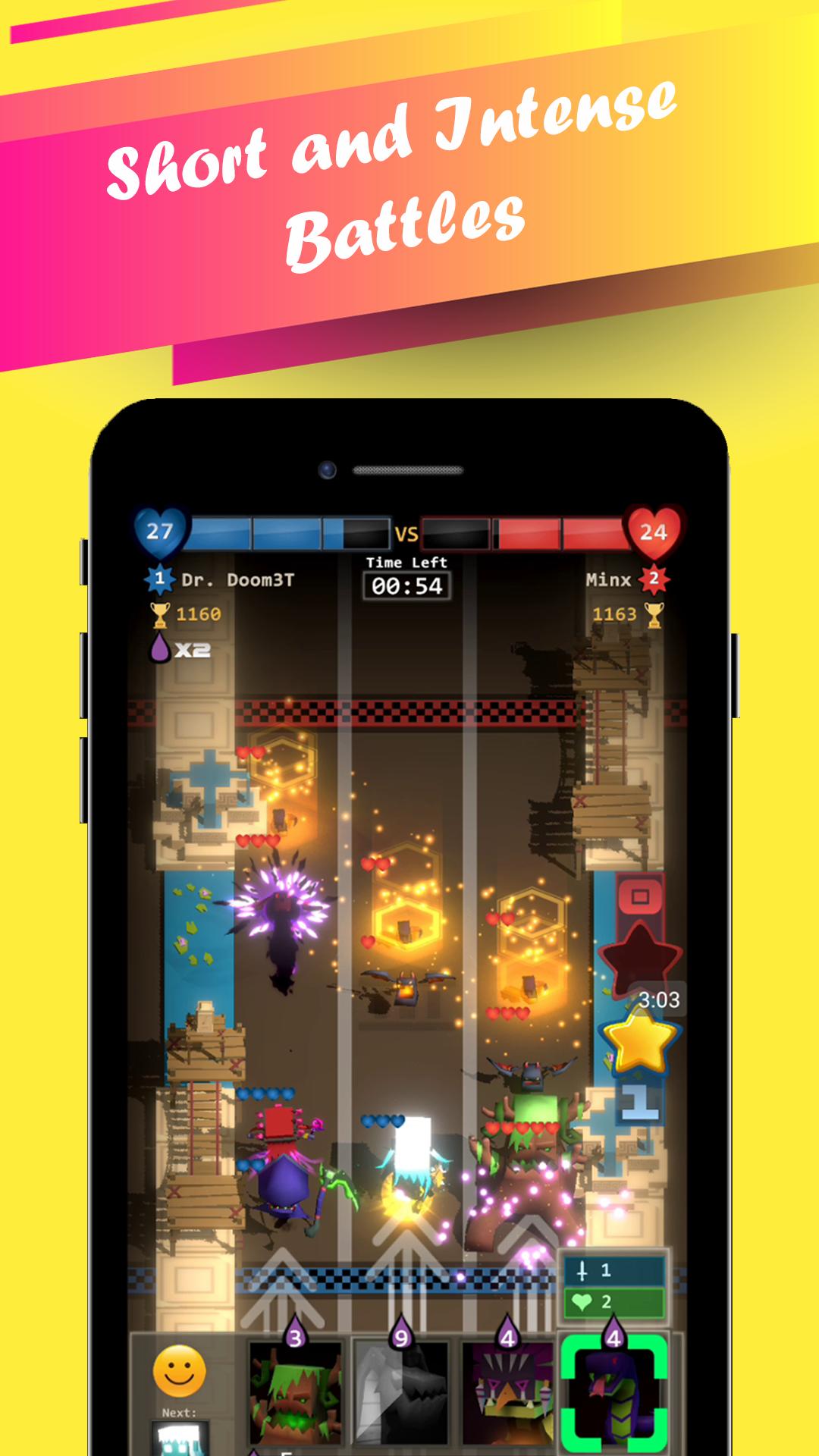 A world where Monsters, Demigods, Undead, Humans and Robots are immersed in an eternal Battle to take control of the Legends Arena, the source of all power. For years, the Legends have fought for glory and power in an endless clash. Devise the perfect strategy and lay siege to your opponent’s base.