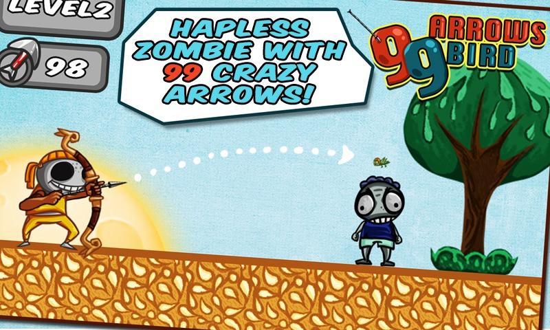 This is a classic bow and arrow game like other classic apple shooter game. Target: Bird on the head of the zombie.