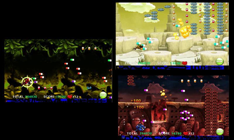 Side-scrolling action game and one touch simple shooting game