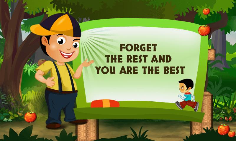 Pappu and Pinku run is 30 stage multiple character fruit collection in jungle posing number of hurdles.If one is really good in games then it would be fun for them to attempt and complete all 30 stages. The tip of the game ips concentration and very good for all age group to enhance their eye to finger coordination. The game will help kids to improve upon their skillset on improving blazing coordination, eye movement and mind manipulation. Play it with zeal to be successful instead of failing in the middle. Try out before making an opinion and Game developer strongly believe that their user believes in " Forget the rest and you are the best". We wish all user grand success and stay tuned as Game developer will notify you for another exciting game which will be launched soon