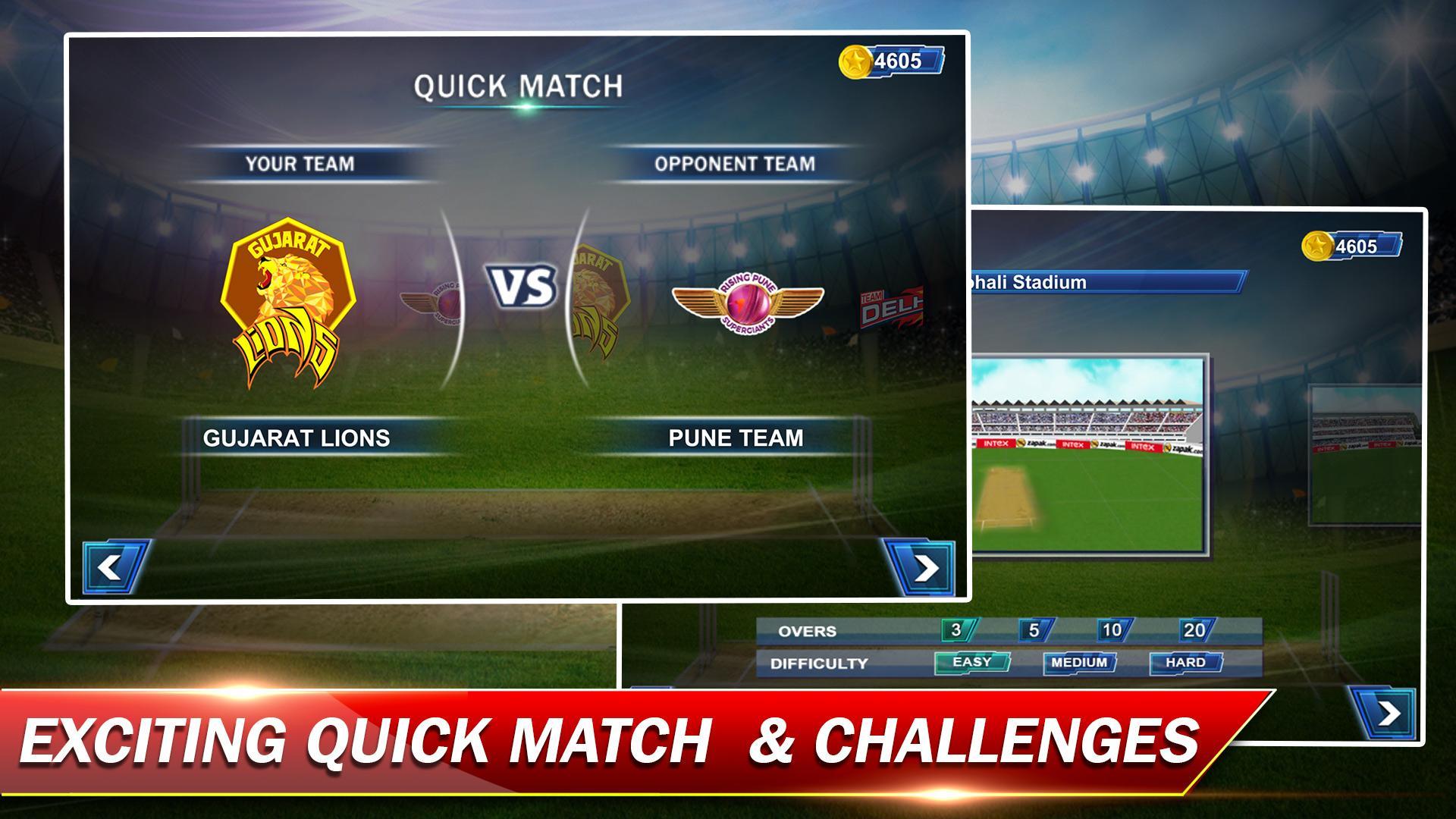 Live your cricket Dream in QUICK MATCH, CHALLENGES and TOURNAMENT modes.