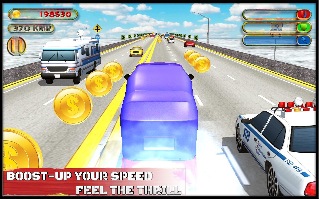 Avoid to hit traffic cars. Drive safe and collect more and more coins.