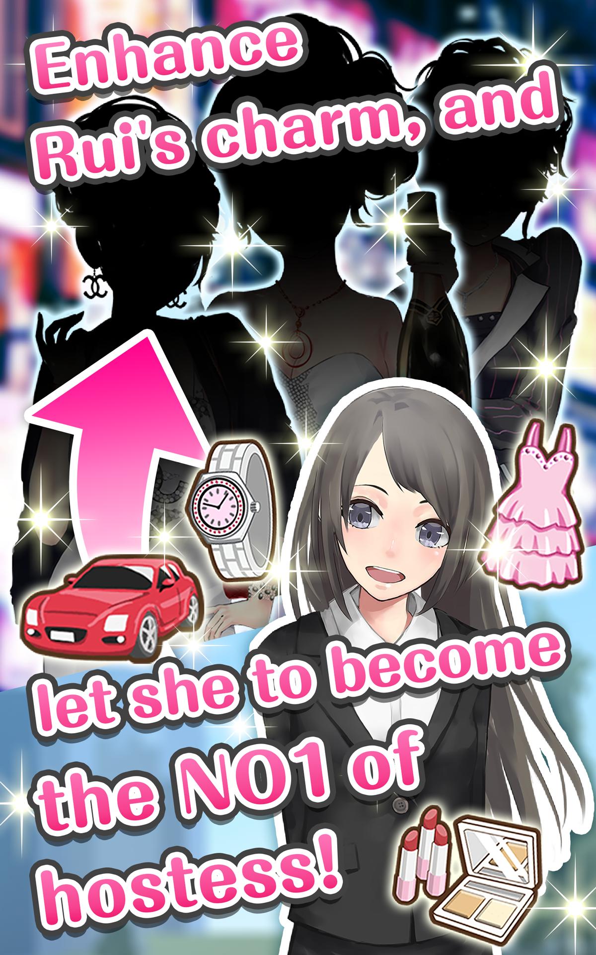 The Attractive Hostess is a caring game that you the owner and the manager help the fresh hostess Rui to make her dream come true by making her more charming and mature.