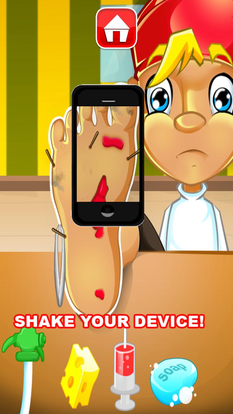 It’s time to be both doctor and foot healer. Ready to give it a try? You will need to clean and scrub each foot, front and back. Don’t forget to rinse! And grab the tweezers to get those nasty splinters. You’ll have to shake your device to free them. Those cuts will need bandages. And there’s some type of green fungus on that foot. Yikes! Clean it off quickly. Use all the tools available. And don’t forget to get both sides of the feet.