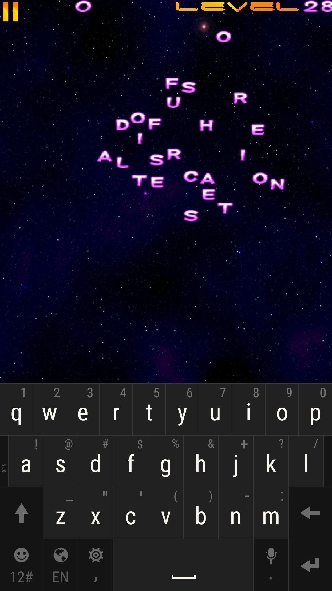 Typomania is an addictive (and sometimes frustrating ;-))word typing game where 'alien' words attack the earth. your mission is to let those words disappear by typing the letters of them. but alas you have only 1 life and if a word reaches the left-side of your screen the earth is lost!
