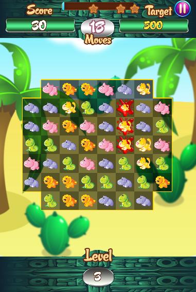 - Swipe three or more same Animal to score points.