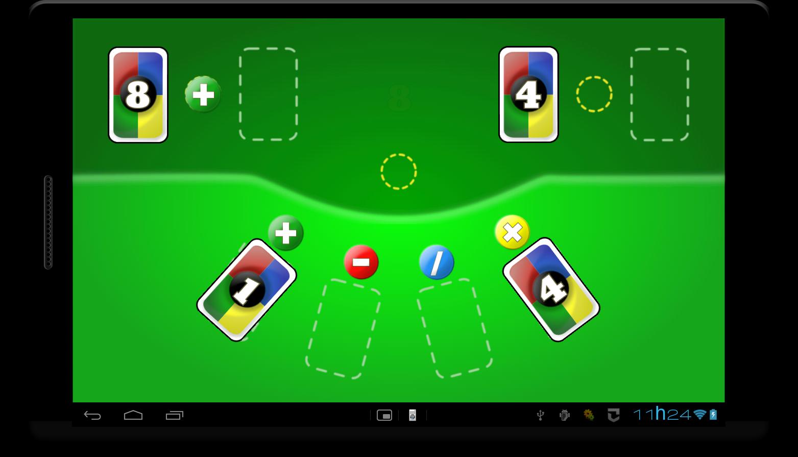 -After you get 4 cards, between 1 and 9, and the arithmetic operators, you should find the right place for each card and the proper operator so that the final outcome is 24.