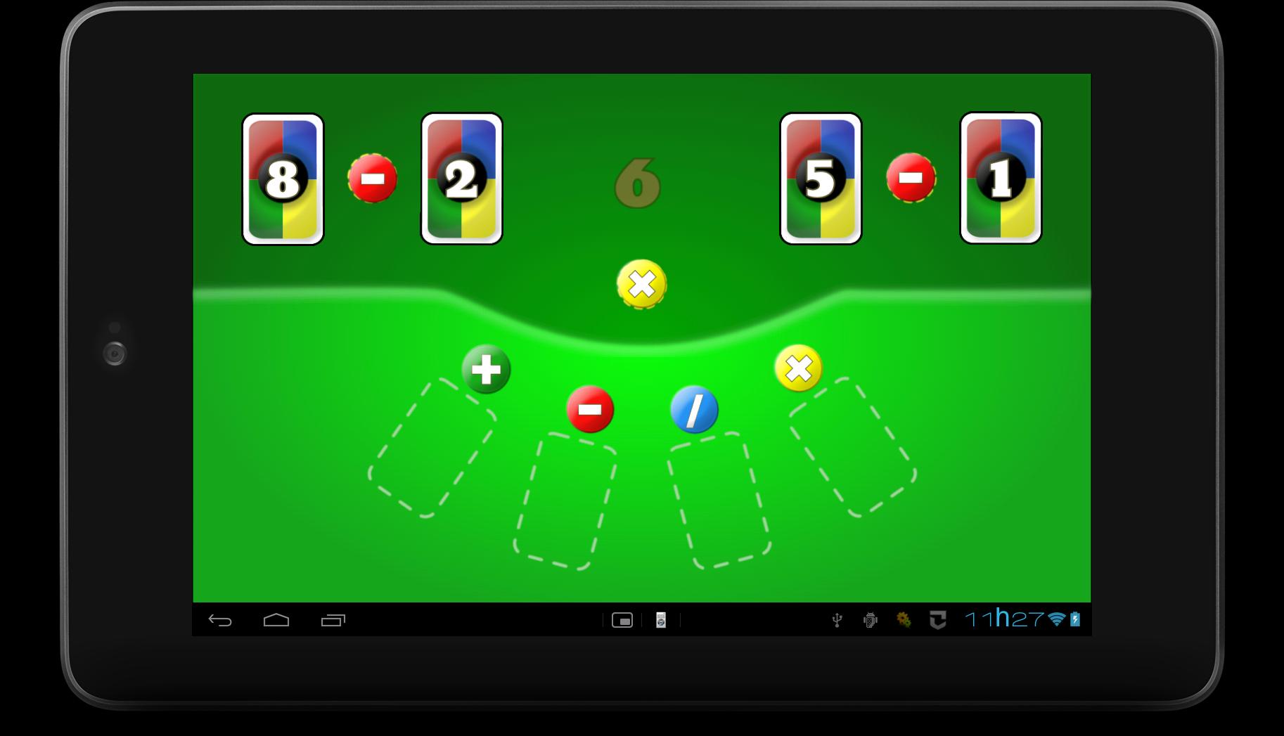 'add up' , it's fun, easy and simple, it's only goal is to reach the number 24 with the supplied cards. The points you get for each answer dependes on it's difficulty.
