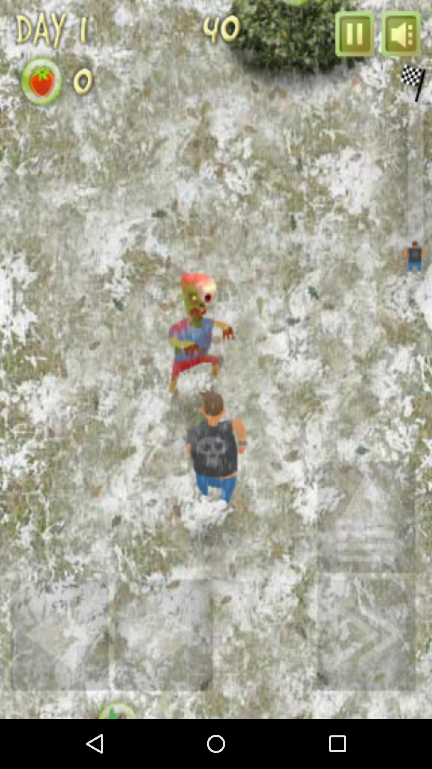 Use virtual keys to control the character to move around, jump, and avoid zombies and obstacles.
