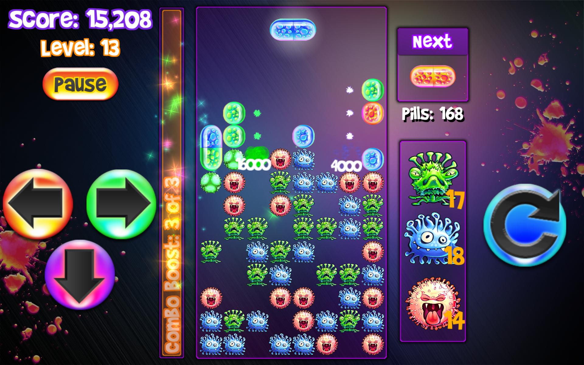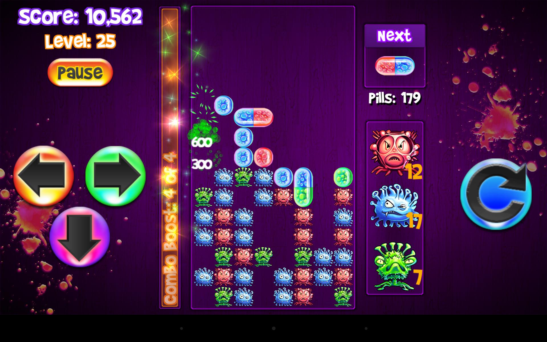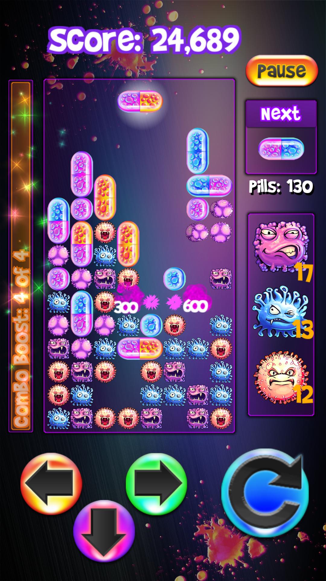 A modern twist to classic falling block puzzle games. The unique Combo Boost Meter and special virus abilities make this pill game easy to learn yet challenging to master.