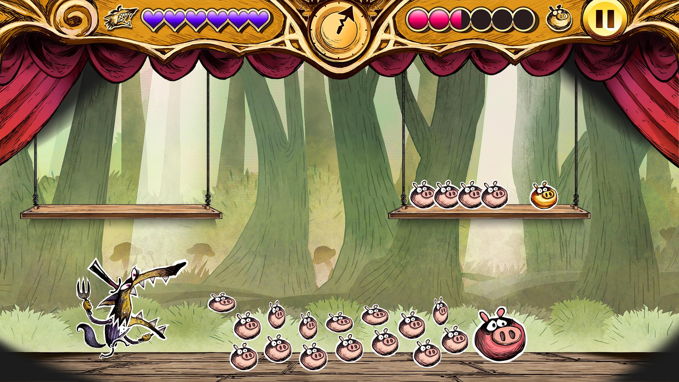 ・Collect the fellow pigs, while running away from the wolf.