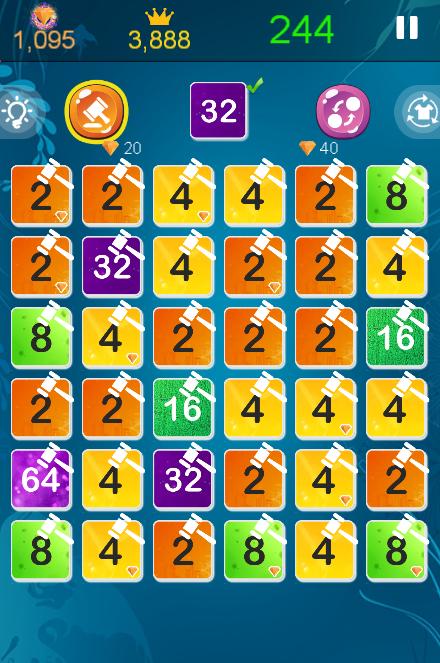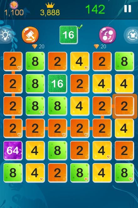 - Connect numbers and grow up to 2, 4, 8, 16, 32, 64, 128, 256, 512, 1024, 2048...