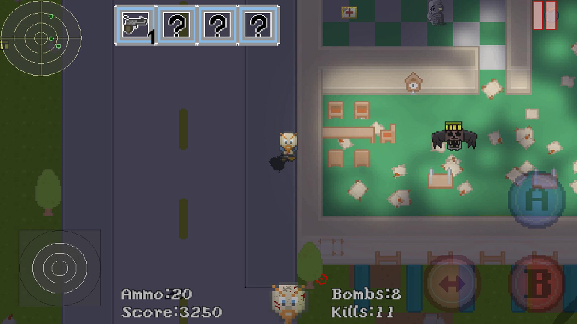 Use everything you can find to attack. Go from a gun and bombs to using a bazoo-cat!