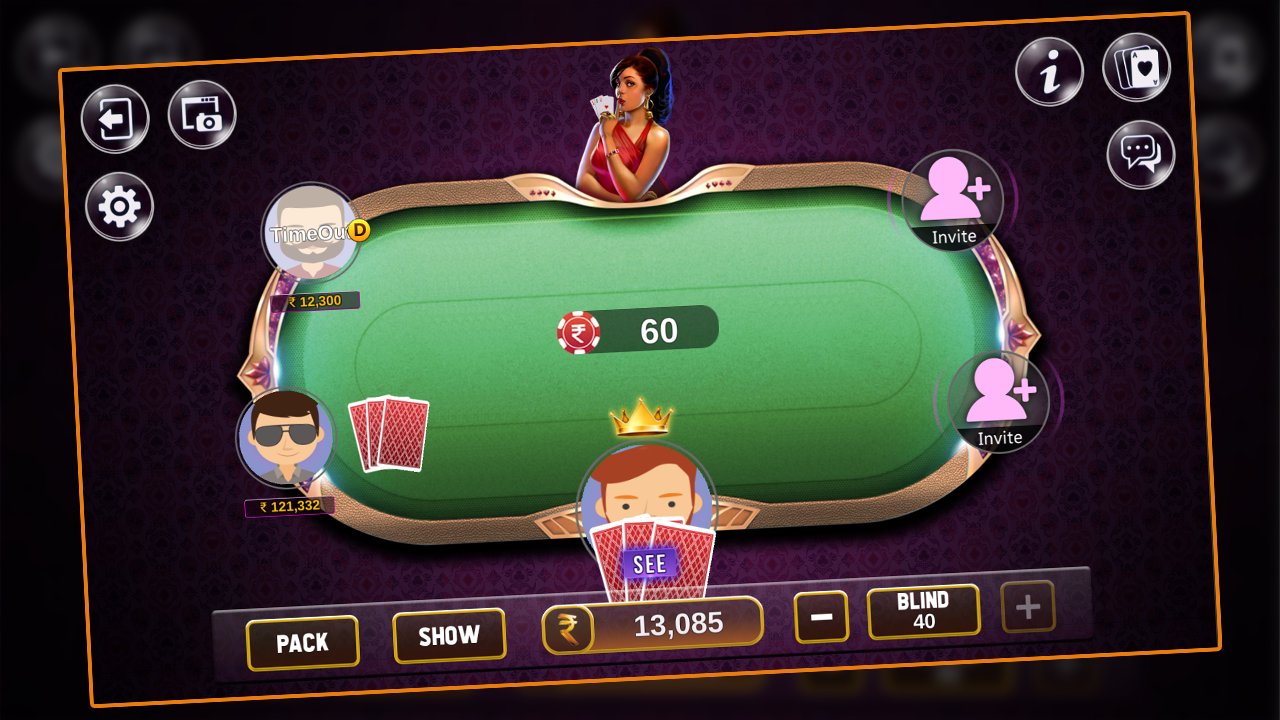 4 card game are dealt to each player. Every player has to arrange three best cards out of 4 cards. You will win if the addition of the three cards is more than other players. If a player has the same result as you then it wont be a tie it the highest card count will be a winner in it. you will find more information of how to play game inside the game information screen, play more to understand and earn more