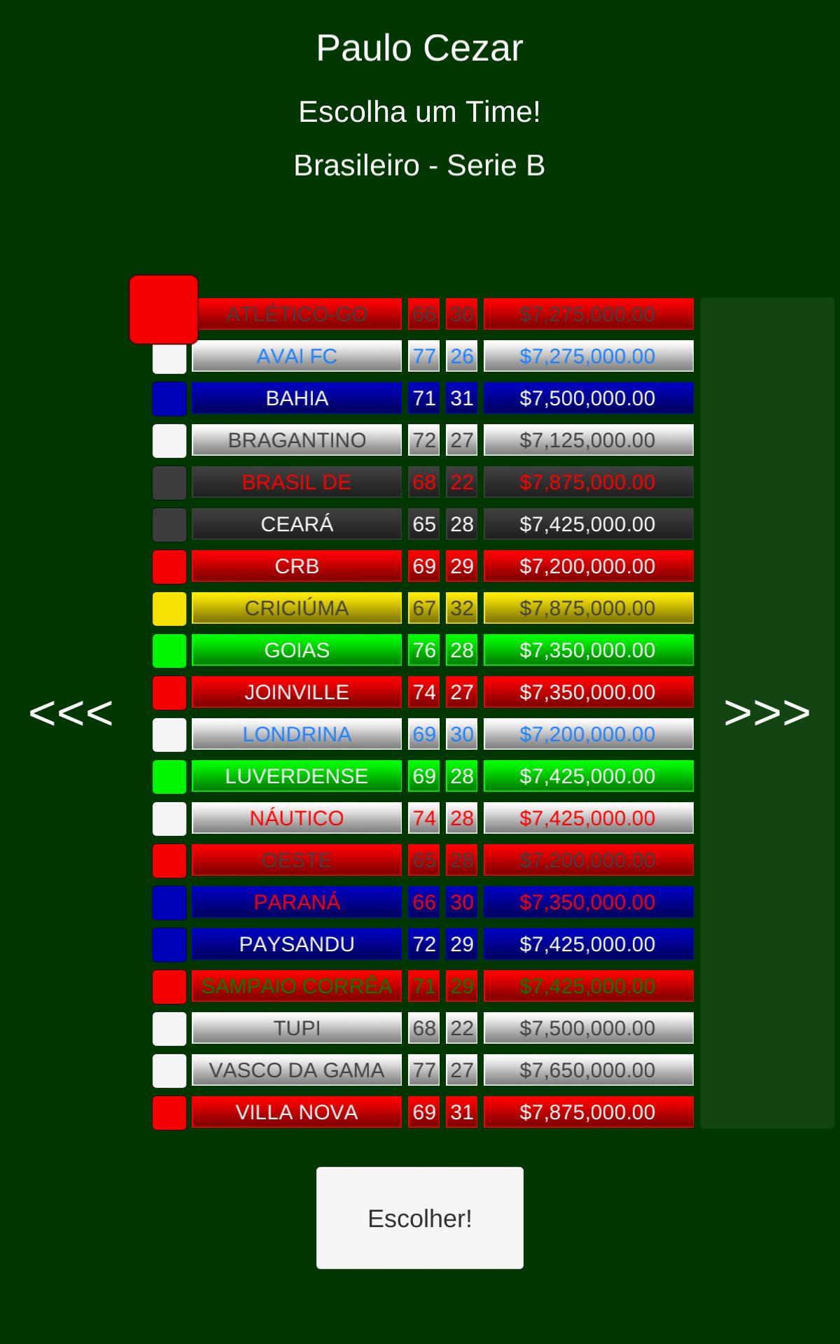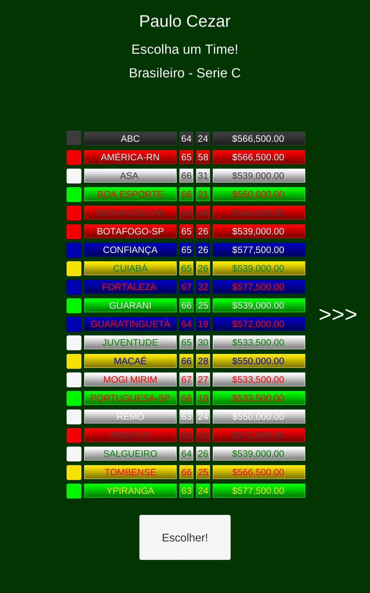 There are several Brazilian teams, designed in the three divisions, choose one, start small or try to keep a giant at the top. Brazilian Championship with three divisions, Brazil Cup with 64 teams, Libertadores and Clubs.