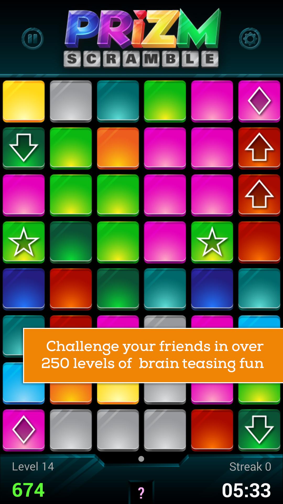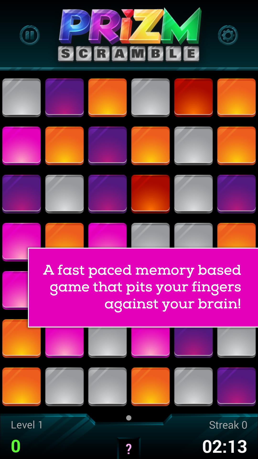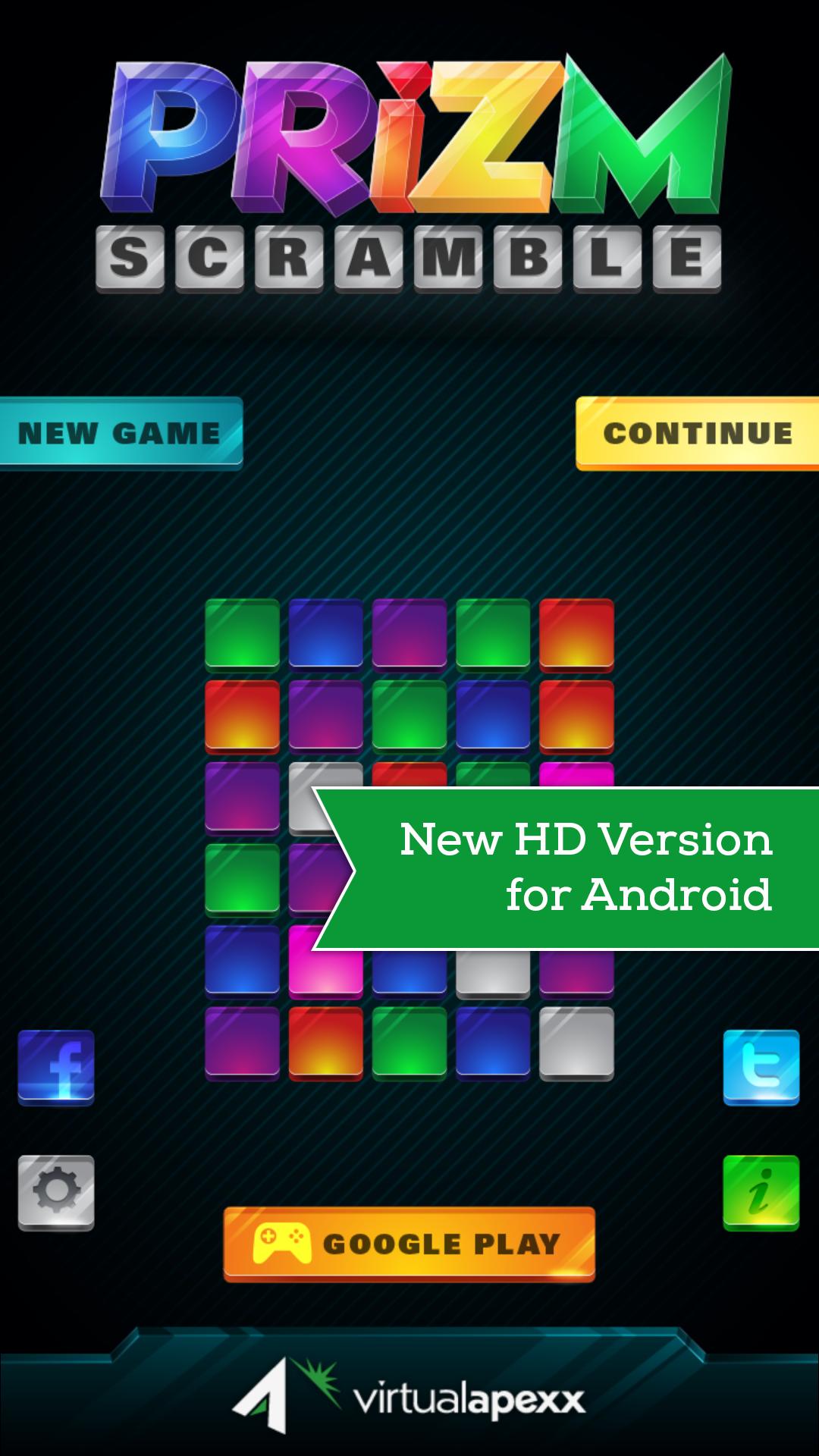 Welcome to the fast paced memory based game that pits your fingers against your brain!! Match your way through over 250 levels of puzzles, collecting bonus bricks to increase your score and creating streaks for bonus time. Watch out for the dreaded clock, which carries over time, but ticks away faster at every wrong move. Prizm Scramble is a truly addictive experience, that tests your cognitive memory throughout every level for hours of brain teasing fun! Let’s get scrambling.