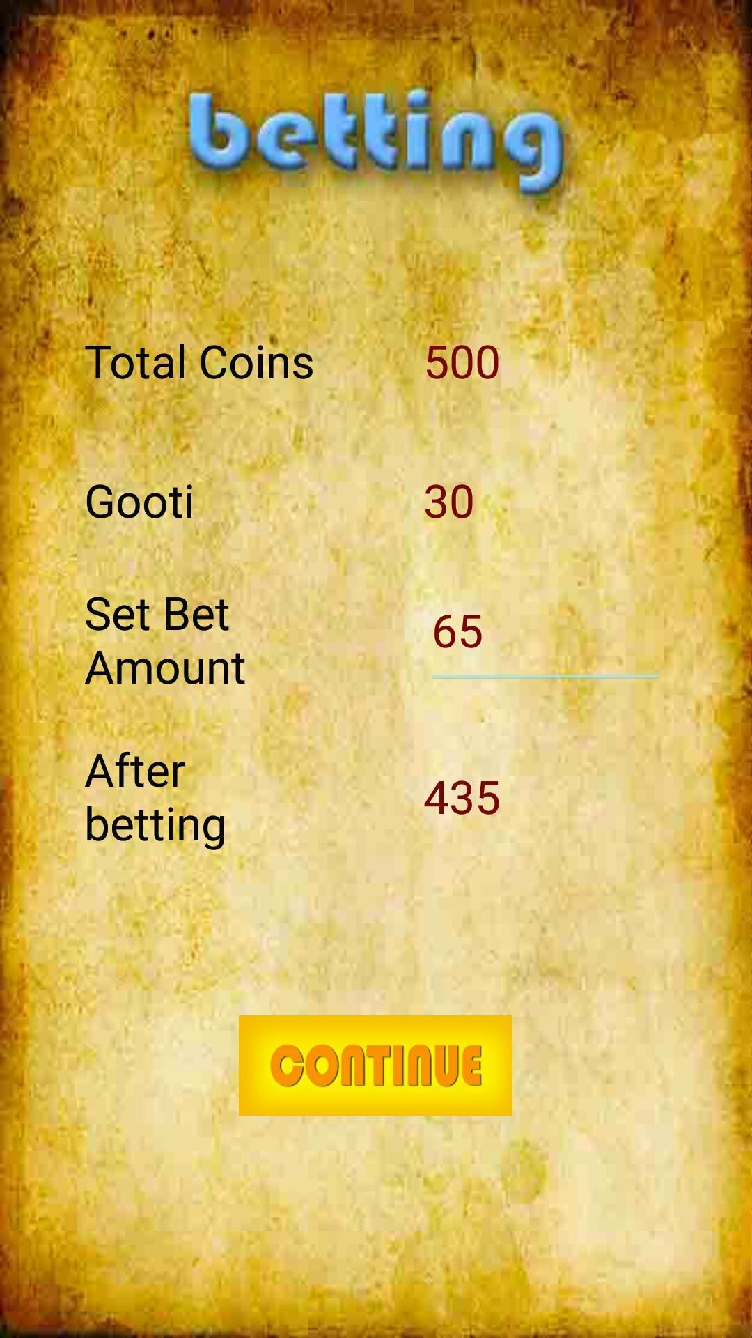 Note: player can play by cpu with or without coin, but betting must set. but if he has no coins the player cannot play with other player