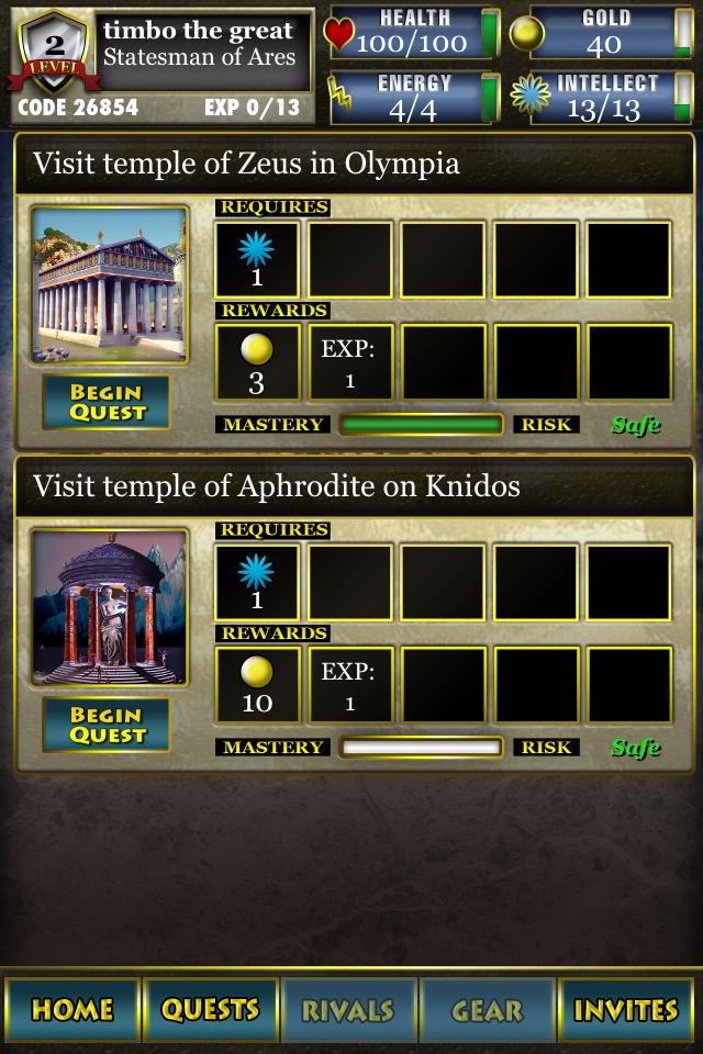 You must see for yourself the beauty and grace of this world to believe it!! Players will feel as if they have been transported to Homer's mythical realm of long ago. So come, my sweet friends, build your own Athens or Rome, grow your city-state...gather your forces...pay tribute and quest for favour from the gods...like it was in the golden age, so it shall be again. Journey with me now...and create your own utopia!!