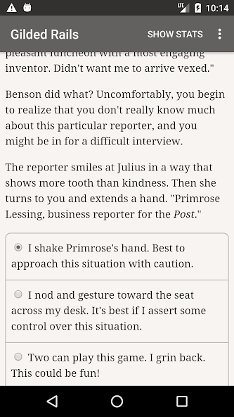 "Gilded Rails" is a 340,000-word interactive dating-management novel by Anaea Lay, where your choices control the story. It's entirely text-based—without graphics or sound effects—and fueled by the vast, unstoppable power of your imagination.