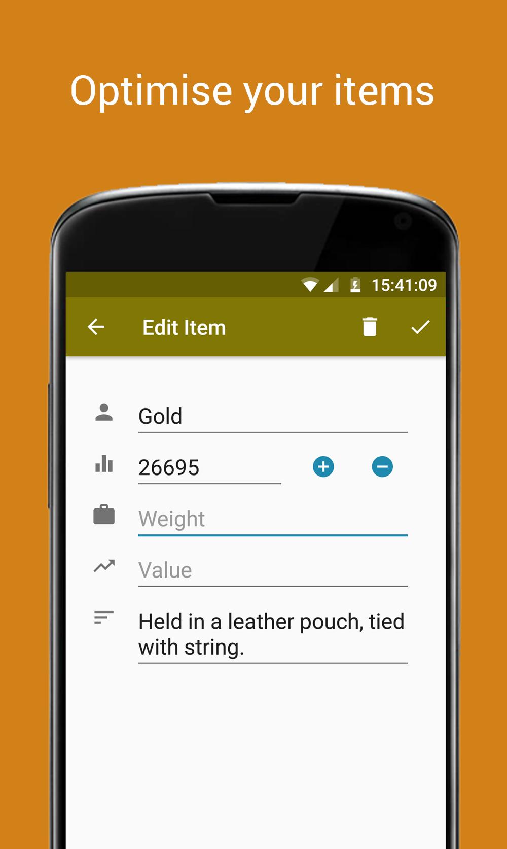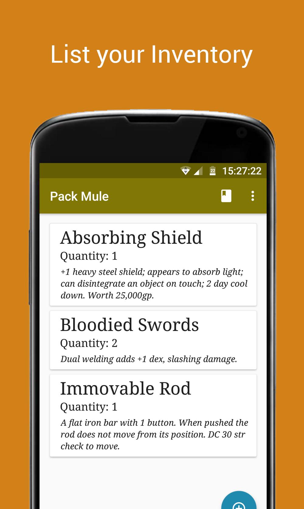 By adapting the tried and trusted inventory style of simply writing a Name, Quantity and Description - your Dungeon and Dragons, Pathfinder or any other role playing game will have such an effortless inventory, you won't ever go back to pen and paper.