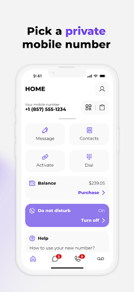 إعداد SLYNUMBER سريع وسهل! ببساطة ، قم بتنزيل التطبيق على هاتفك ، واختر رقمك وابدأ الاتصال والرسائل النصية.