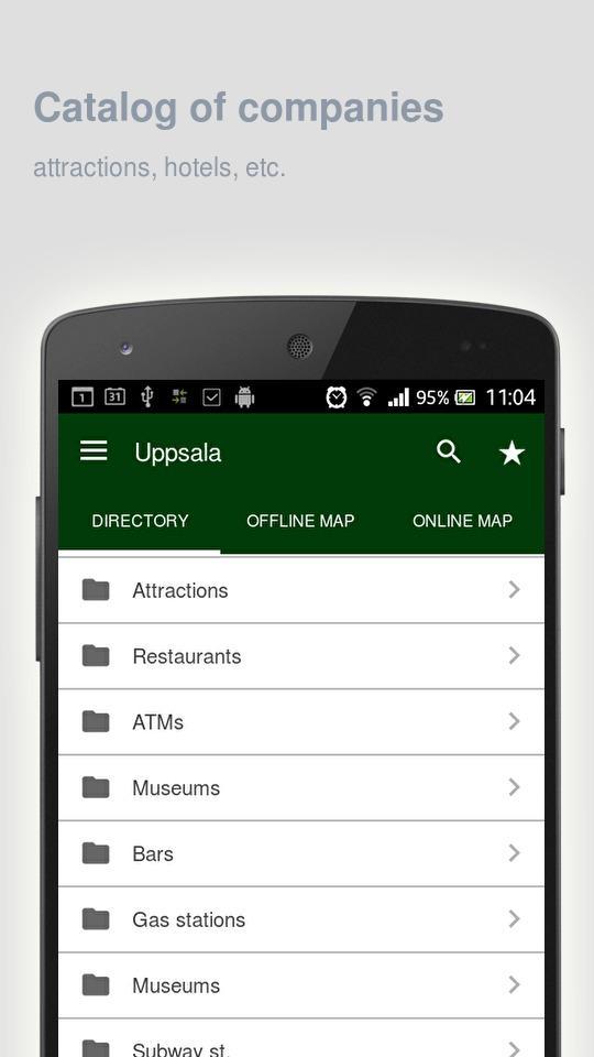 خريطة عبر الإنترنت وغير متصلة Uppsala : مناطق الجذب ، المتاجر ، الفنادق.
