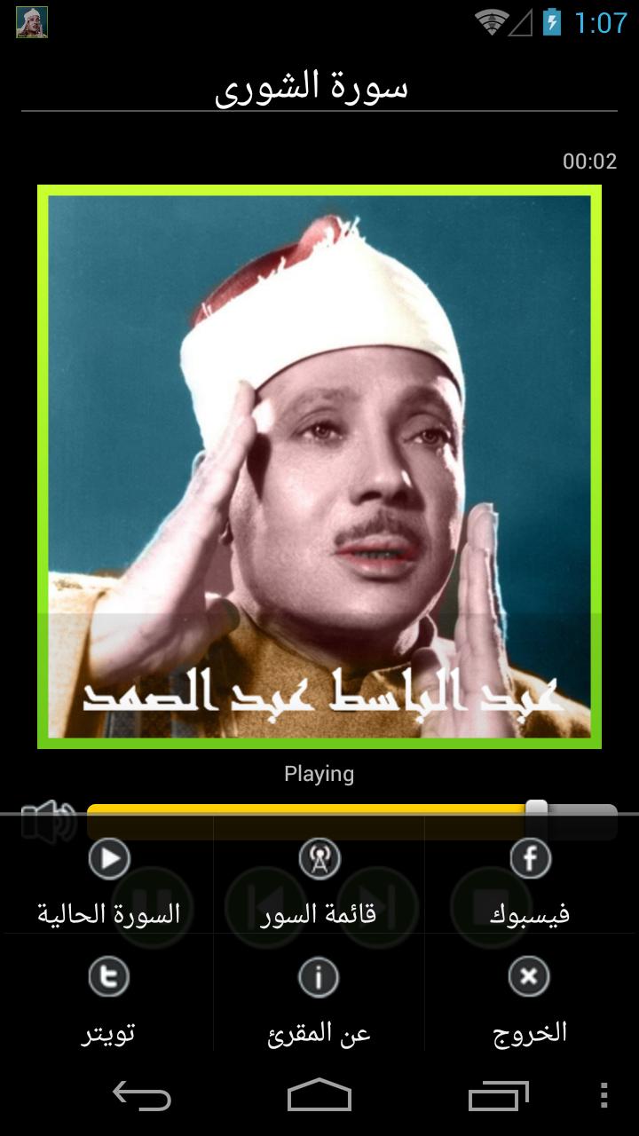 يحتوي هذا التطبيق على القرآن الكريم الكامل في الصوت العربي وصوت MP3 عالي الجودة من قبل القرآن الشهير عبد الباستيت عبد الصد