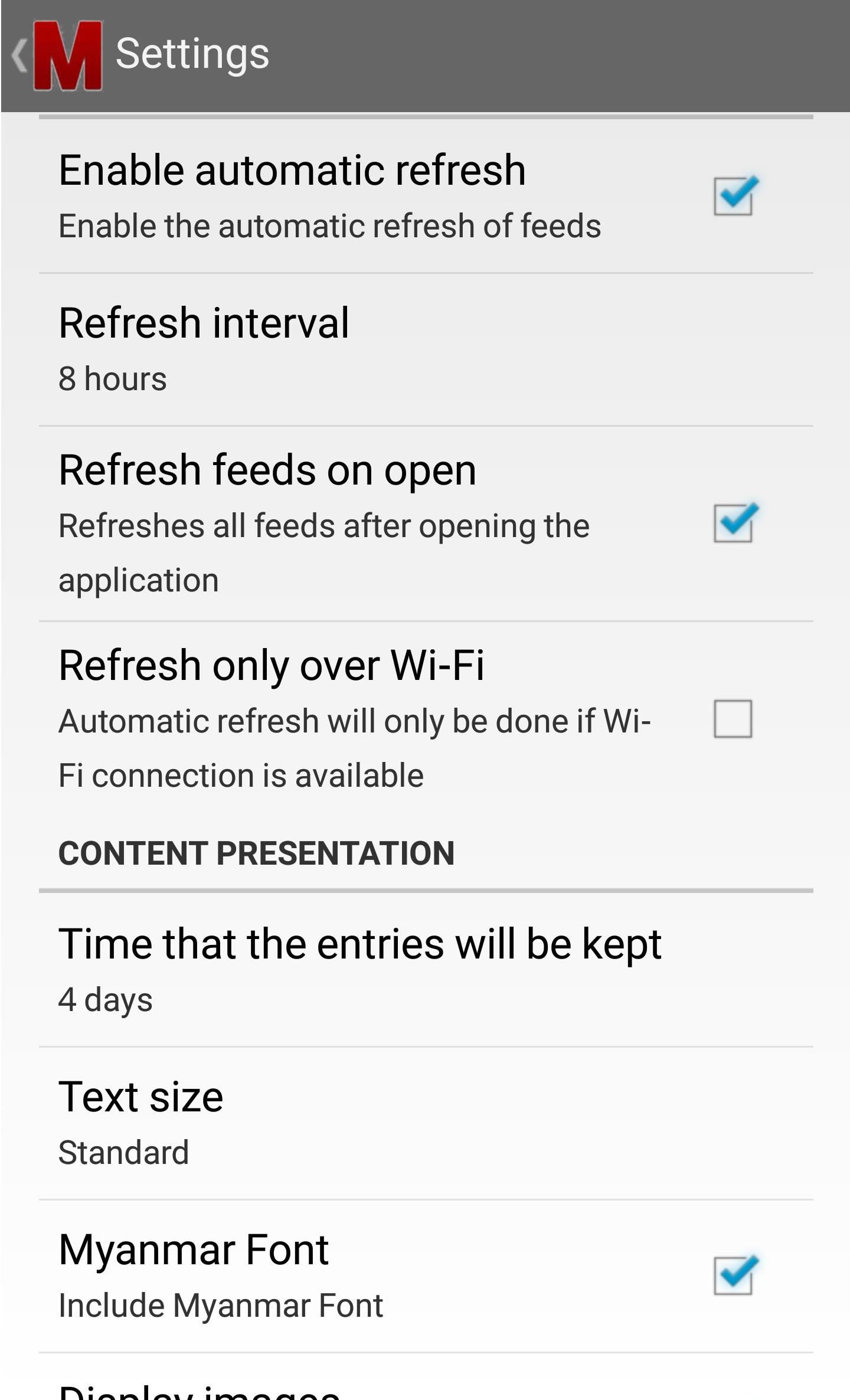 هذا هو تطبيق قارئ التغذية للأخبار من M-Media. سيحضر التطبيق أحدث خلاصات الأخبار من http://www.m-mediagroup.com/ ، يمكنك تحديد الأخبار بلغة اللغة الإنجليزية وميانمار. يسمح للمستخدمين بحفظ المقالات والعناصر المفضلة داخل الهاتف للقراءة غير المتصلة بالإنترنت. خط ميانمار مضمن داخل التطبيق.