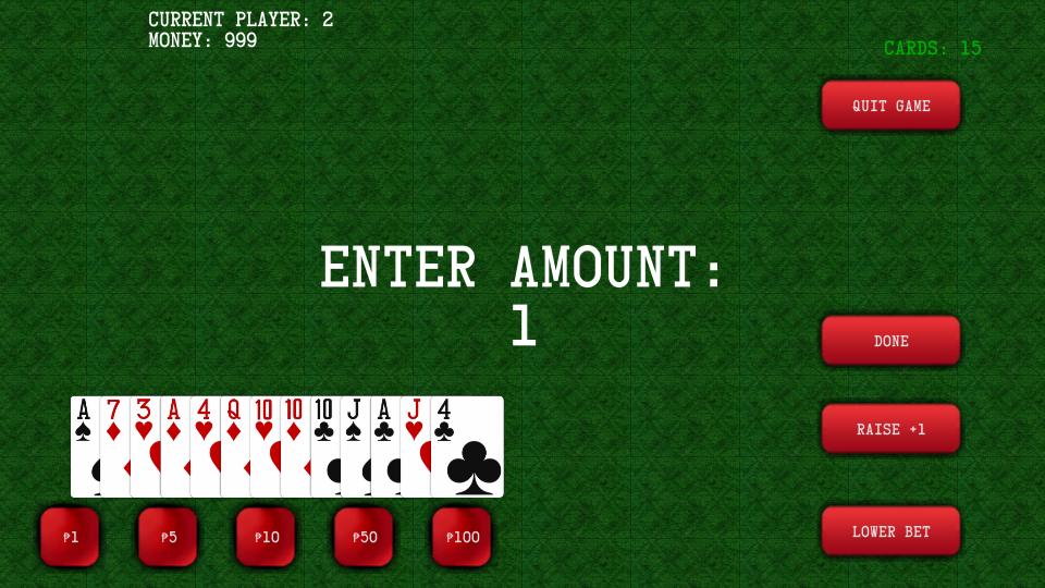 Tongits أو Pinoy Rummy هي لعبة بطاقات محلية حيث يجب على ثلاثة لاعبين الفوز بما يلي: من خلال Tally جميع البطاقات في متناول اليد من قبل كل لاعب لمعرفة من الذي حصل على أقل قيمة (جميع بطاقات الوجه حصل على 10 دائمًا) ، أو تمحد جميع البطاقات حتى لا يحصل اللاعب على بطاقات في متناول اليد ، أو أداء السحب. قم بتشغيله مع أصدقائك واختبر مهاراتك في الثراء والذكاء لمعرفة من هو آخر رجل يقف. إنها لعبة كلاسيكية بالتأكيد أحبها الكثيرون.