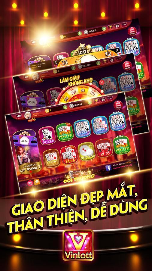 Vinlott - بطاقة اللعبة الكبيرة هي تطبيق لعبة بطاقة عبر الإنترنت مجانية على الأجهزة المحمولة.