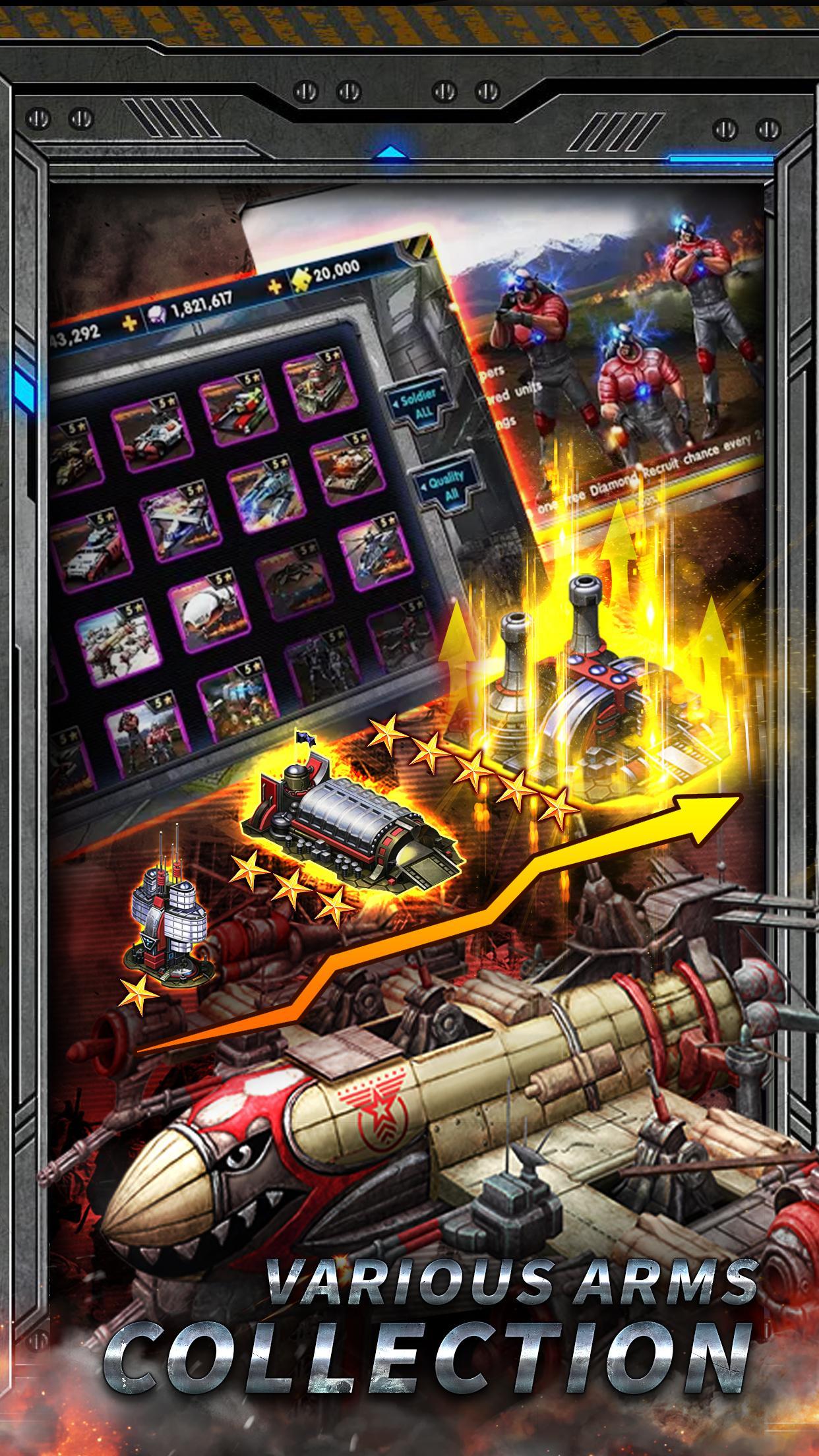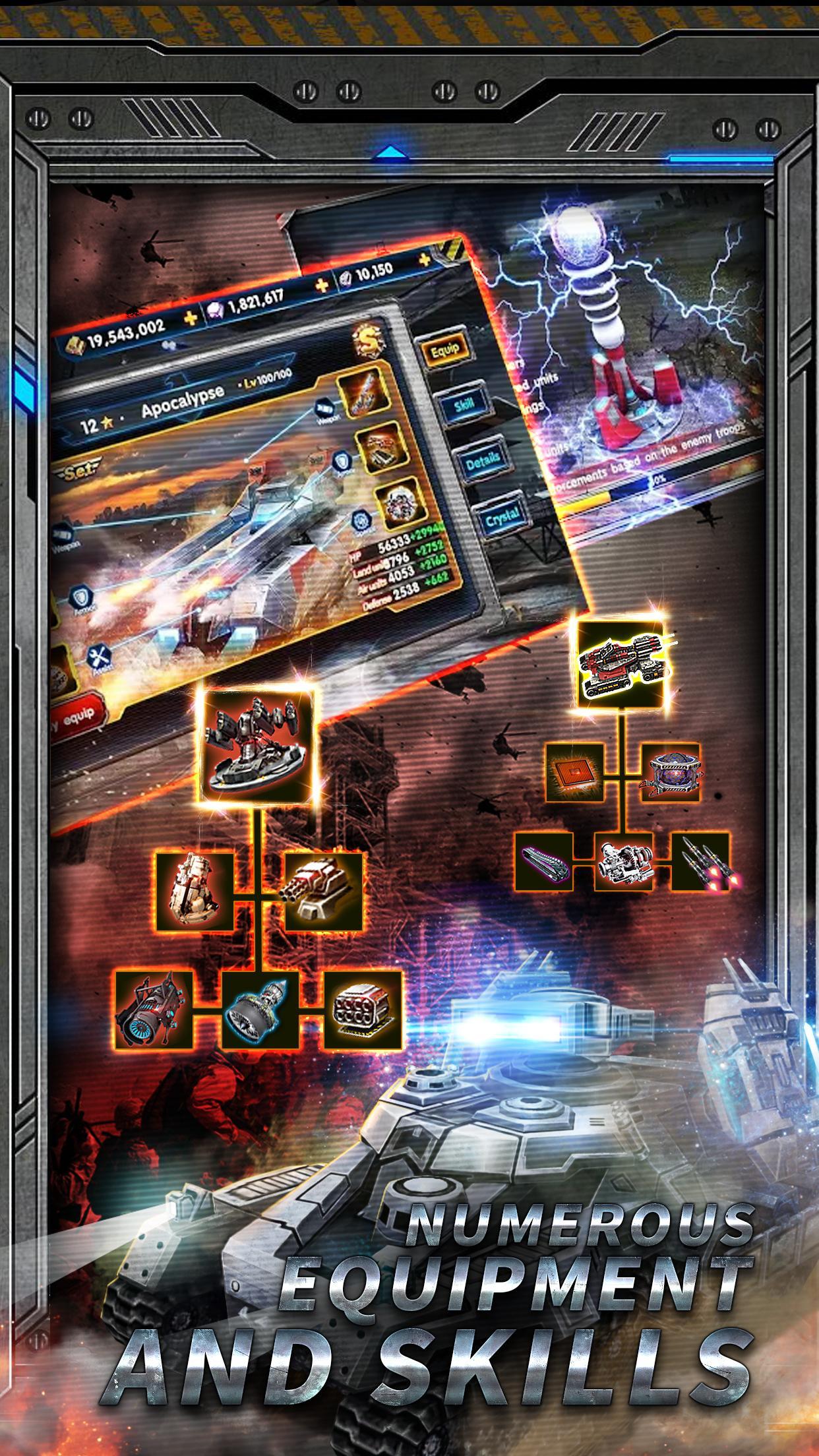 - استخدم الدبابات والمروحيات والعديد من المركبات العسكرية الأخرى لتحدي أعدائك. قم بترقية وحداتك بأكثر من 100 بحث متميز!