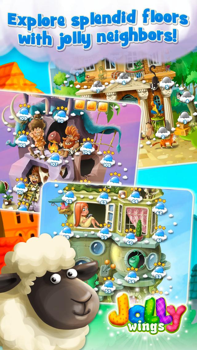 في Jolly Wings ، ستحتاج إلى قيادة الببغاء الخاص بك إلى سطح "Highrise" ، مع مساحة كبيرة لتحدي مثير وجار مضحك على كل من طوابقه.