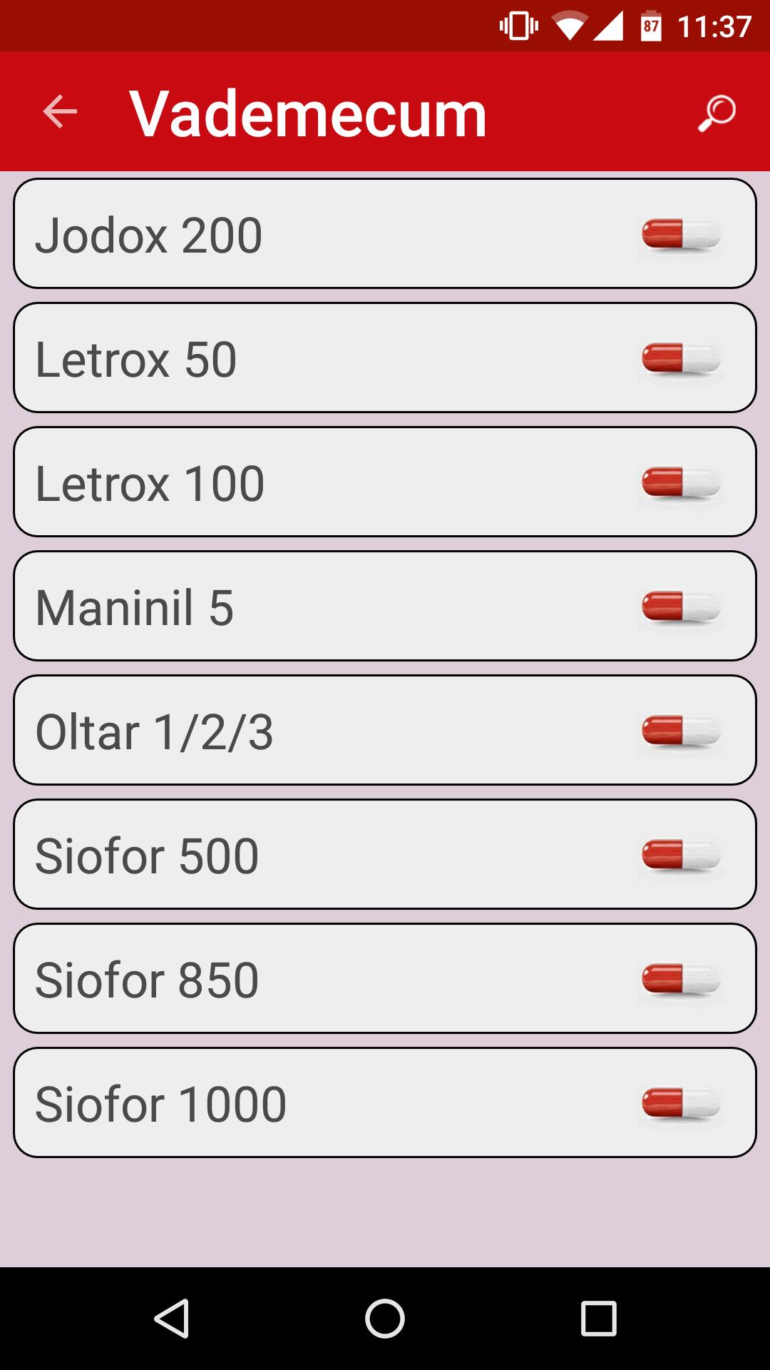 Mit dieser Anwendung können Sie die Informationen finden, die für einige Kategorien von Drogen benötigt werden. Um dies in der App zu erreichen, wurden Kategorien erstellt, um Medikamente in kardiologische, endokrinologische, ohne Rezensenten und andere Medikamente zu teilen. In den Kategorien werden detaillierte Informationen zu jedem Arzneimittel, quantitativen und qualitativen Zusammensetzungen, pharmazeutischen Formen, klinischen Merkmalen, pharmakologischen Merkmalen und pharmazeutischen Merkmalen angegeben.