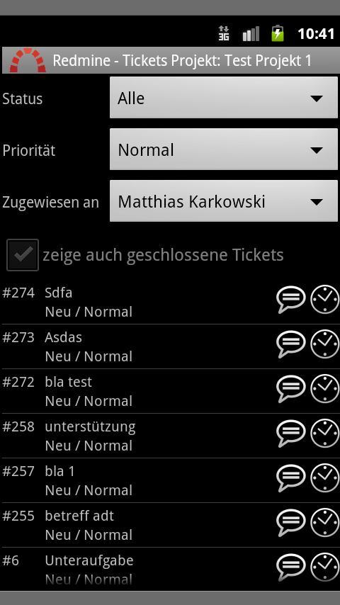 Nachdem Sie die Daten vom Redmine -Server mit der Redmine App -Datenbank synchronisiert haben, können Sie im Offline -Modus durchsuchen.