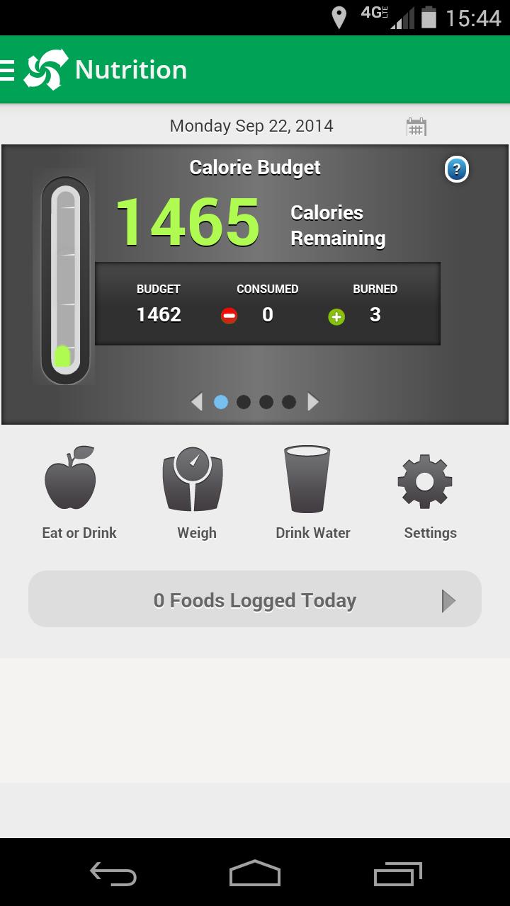 Und wenn Sie nicht trainieren, können Sie Inmotion verwenden, um ein tägliches Kalorien- und Nährstoffbudget aufzubauen. Suchen Sie dann und protokollieren Sie die Lebensmittel, die Sie gegessen haben, um Ihr Dashboard -Update zu beobachten, und verfolgen Sie Ihre Fortschritte in Richtung Ihres täglichen Ziels.