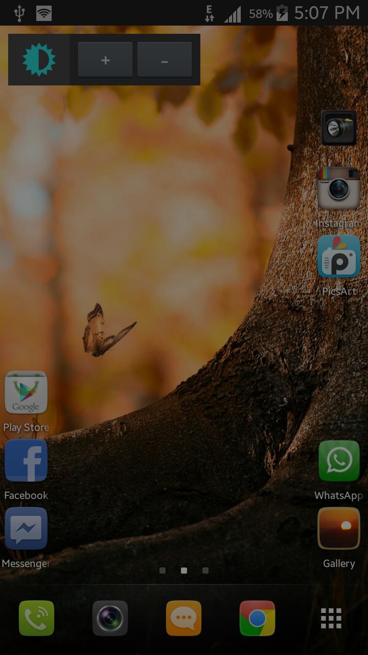- El control de los widgets en Brightness Dimmer le permite controlar la aplicación en la pantalla de inicio