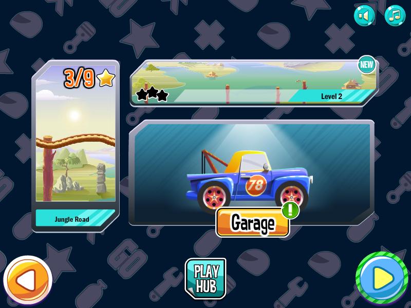 Coloque primero y recolecte 3 estrellas para ese nivel. Mientras corres, también recolectará monedas que se pueden usar para desbloquear nuevos autos y camiones de carreras.