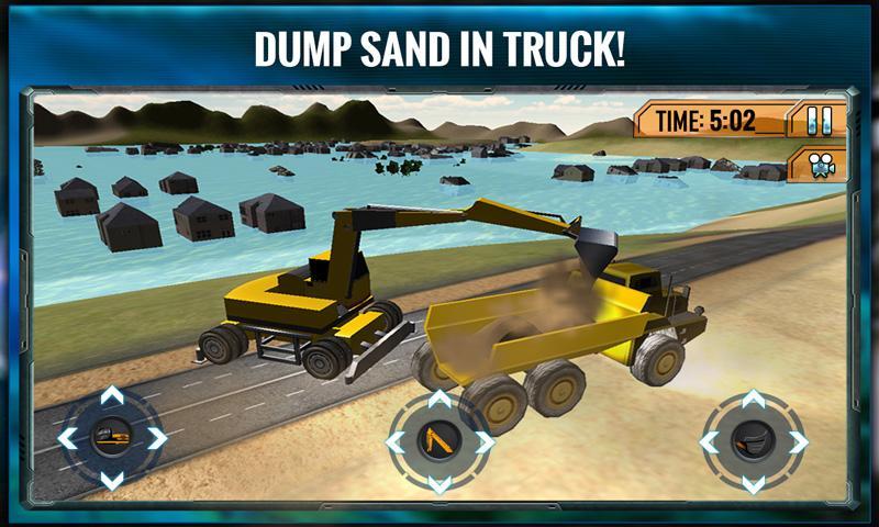 Las fuertes lluvias y las ondas sísmicas han causado desbordamiento de la presa. La ciudad está inundada después de un gran golpe de ola marina. La situación es hosca, fuera de control e invisible todavía. La ciudad está llena de caos; Los ciudadanos son de pánico y corren en las calles. A medida que el salvador de rescatador de emergencia alcanza su rescate. Ayude a las personas a conducir una grúa de excavadora pesada para bloquear el flujo de agua que llega a la ciudad. Escapar de las olas de tsunami desde el océano. La corriente de agua es extremadamente rápida y destruye casas en polvo y escombros. Levante de bloqueo de bloqueo de arena y sémola de bloqueo con grúa de arado de excavador y voléelo en camión Dumper. Utilizando el constructor experto y las habilidades de excavación, coloque contenedores pesados, bloques de concreto y piedras de roca para detener el agua de inundación.