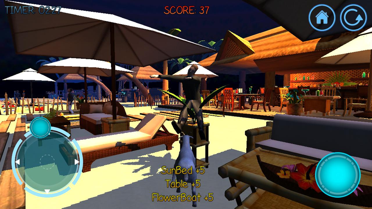 ¿Hay una fiesta en la playa y supongo que te acaban de invitar? El verano está aquí y tu simulador de cabras favorito ha vuelto con otra divertida aventura en 3D. Esta vez ha decidido dirigirse a la playa para atrapar algunos rayos. Llévalo a nadar o hazlo hablar con otros asistentes a la playa. Esta cabra siempre encuentra una manera de causar caos. Se estrella y ataca a todo. Cajas, barcos, sillas, mesas, paraguas, automóviles, árboles, personas, arañas, plantas y muchos más objetos. Ideal para niños y adultos. Chicos, niñas,